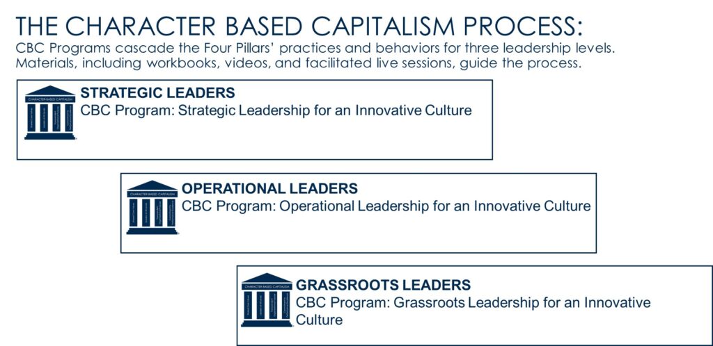 By systematically building Character-based Capitalism throughout your client’s organization, you’ll help their leaders create the foundation for sustainable success in today’s dynamic business environment.